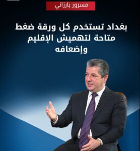 مسرور بارزاني: هذه قضايا سياسية تمامًا، لأنها إذا كانت تقنية أو قانونية، فقد أرسلنا وفودًا ذهابًا وإيابًا إلى بغداد، وتم حل جميع هذه القضايا الفنية والقانونية في كل مرة يتم فيها وعدنا بعدم وجود المزيد من المشكلات الفنية المتبقية للرواتب القادمة، ولكن في مرحلة ما، ستظهر مشاكل جديدة ولإثبات حقيقة أن هذه المشكلة السياسية، يمكننا أن ننظر إلى الوراء ونرى كيف تعاملت بغداد مع كوردستان في مناطق أخرى على سبيل المثال تم توظيف 3.5 مليون شخص في العراق في السنوات القليلة الماضية لم يكن أي منهم لكوردستان، تم اقتراض 50 مليار دولار من قبل الحكومة الاتحادية. لم يكن هناك، دولار واحد لكوردستان، ولكن… وفي سداد الديون، كان على كوردستان أن تسدد من حصتها لذلك نحن لا نستفيد منه ولكن علينا أن ندفع من حصة كوردستان، يتم دفع رواتب أكثر من 7 ملايين شخص من الرعاية الاجتماعية في العراق من قبل الحكومة الاتحادية من بينهم 72 ألفا فقط من كوردستان هذا يمثل 1 في المئة لذلك هناك الكثير من التمييز. هناك الكثير من الظلم وعدم العدالة في التعامل مع كوردستان لذلك، لا توجد طريقة سوى وجود ميل سياسي قوي لممارسة المزيد من الضغط على كوردستان وتهميش كوردستان وإضعافها ومن المؤكد أن الرواتب تستخدم كضغط سياسي ضد كوردستان.