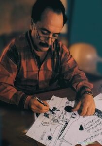 وقد زامن حبه للرسم ذلك، متابعة محتويات مكتبة والده الثقافية، الذي كان لوالده الفضل الكبير باختياره الكتب التي تتماشى مع ذهنيتهالعمرية وموهبته.