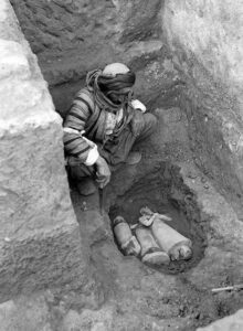 نظراً لأهميته التاريخية وبعد أن تعرض الموقع لعدد من عمليات الحفر غير القانونية، فقد بدأت عمليات الحفر والتنقيب فيه بشكل رسمي عام 1935 و1936 وذلك من قبل فريق من المعهد الشرقي في شيكاغو بقيادة سيتون لويد؛ حيث كان في الفترة ذاتها يعمل في كل من منطقتي اشنونا وخفاجة، وكانت جهود التنقيب الأولية ترتكز بشكل أساسي على المعبد الديني القديم الكبير الموجود في الموقع والمعروف باسم معبد الشرع؛ حيث يغطي مساحة تعادل 60 متر مربع ويحيط به حائط بعرض 6 أمتار مع دعم كبير، ونظراً لتآكل غالبية أجزائه فقد كانت الدراسة ترتكز بشكل أساسي على الجزء الغربي فقط، وقد أسفر ذلك عن اكتشاف مجموعة من الحبال، والحجارة، ونفق كبير يشير إلى الهجوم الذي تعرض له هذا المعبد في عصر فجر السلالات، ناهيك عن مجموعة من المقتنيات الأثرية ومنها: عدد من مخابئ الكنوز، والأختام الأسطوانية، ونموذج عربة النحاس التي كانت تُستخدم قديماً، وتمثال رجل راكع يحمل إناءً فوق رأسه، وغيرها الكثير.